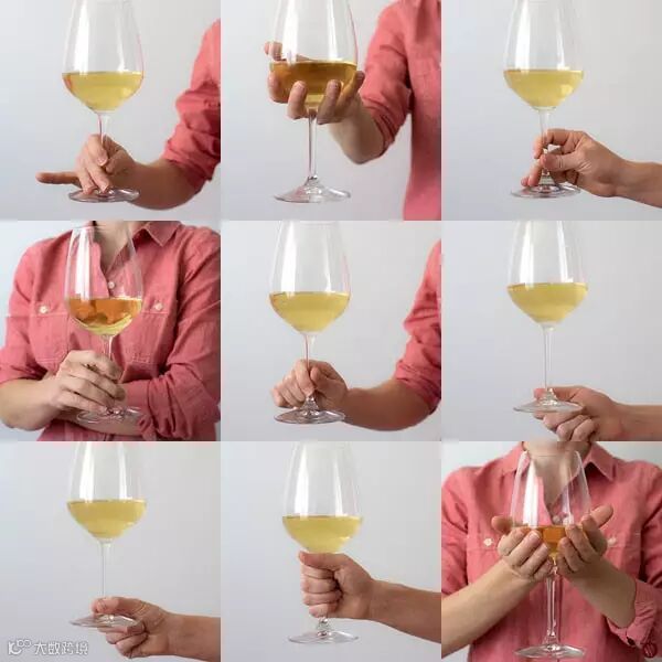 以上这张图反映了多种持杯姿势,一般情况下,你可以随意地握杯,只要舒服就行。只要你享受到了品酒的乐趣,就不必太在意其中的细枝末节。但在一些社交场合就需多加注意了,如果在一个有档次的品酒活动中,有人把你酒洒的照片发到朋友圈,那就太丢脸了。