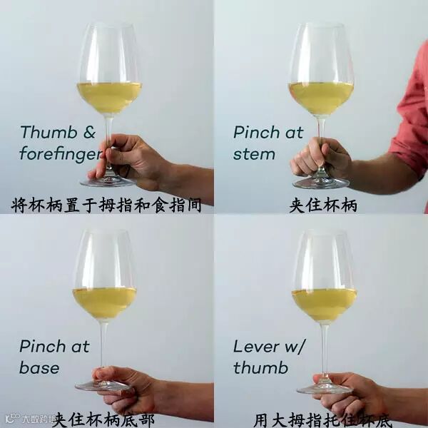 品酒时,握住杯柄是标准正确的姿势,原因如下: