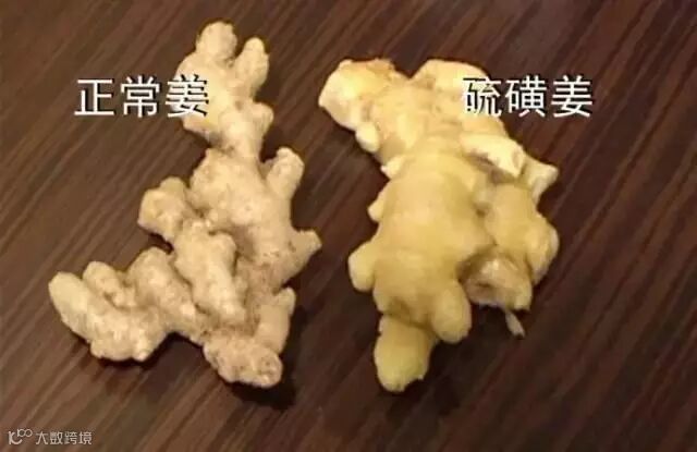 被硫磺熏过的姜一般太过干净,好像打了蜡一样,光滑水嫩。用手蹭下姜皮,硫磺姜的皮很容易剥离,而且姜肉的颜色和姜皮的差别很大。还可用鼻子闻一下,若有淡淡的硫磺味,千万别买。