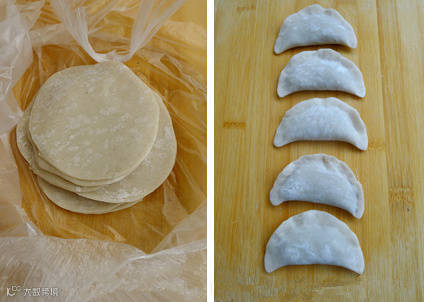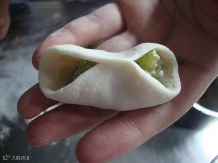 包入菜馅,捏成月牙饺