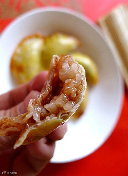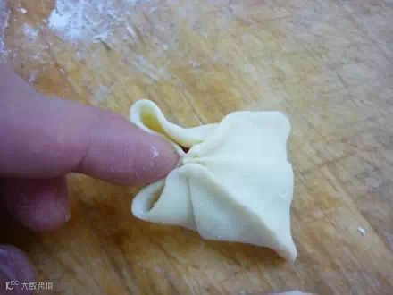 把面皮翻过来,放入馅心。