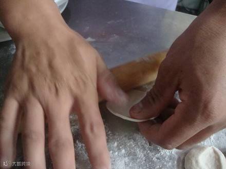 ③面团搓条,下剂,擀皮,包馅。皮要薄。