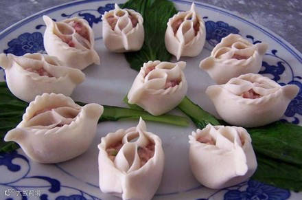 馅心:芹菜250、肉末150、盐、味精、鸡精、胡椒粉、料酒。