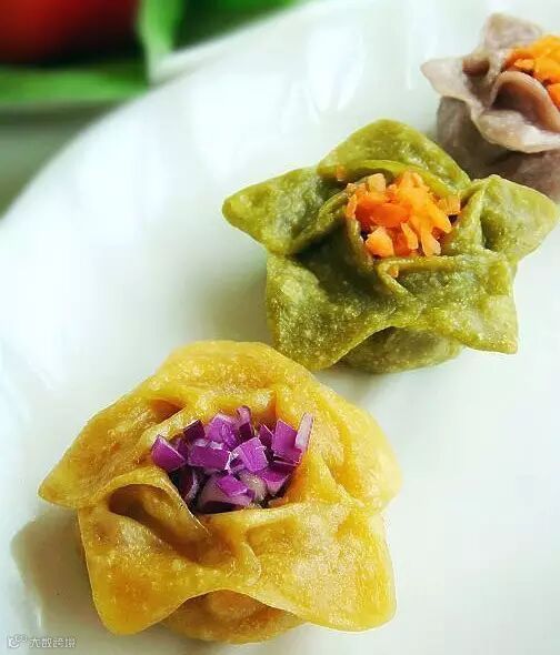⑤上面就是详细的包制手法,然后上锅蒸10分钟,出锅后点缀即可!记住颜色对比要鲜明而且不冲突啊