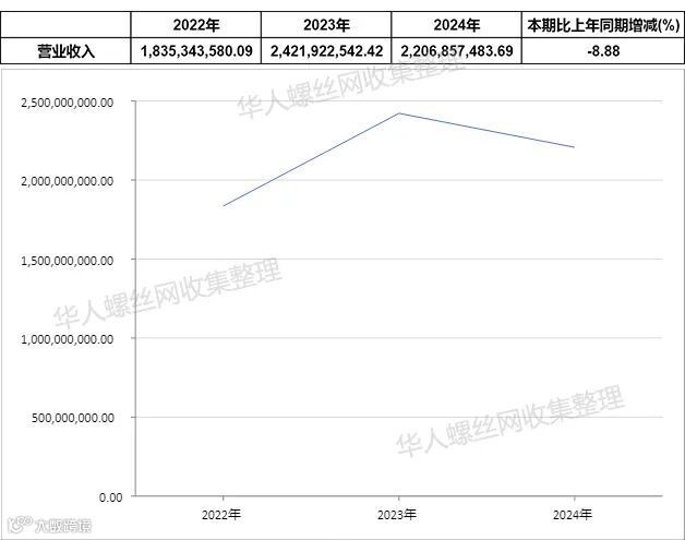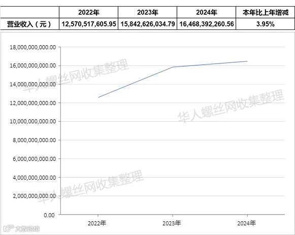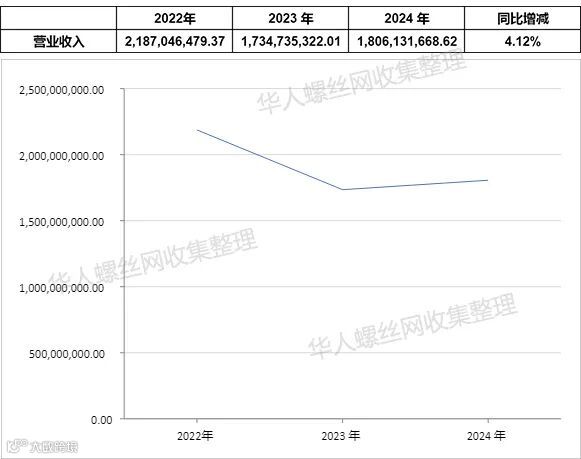 2024 年,长华集团实现营业收入 220,685.75 万元,较去年同期下降 8.88%;产品分类中,紧固件营收为82,328.97万元,占比为37.31%%;市场分布上,境内收入为212,646.39万元,占比96.36%%,境外市场营收128.98万元,占比0.06%。