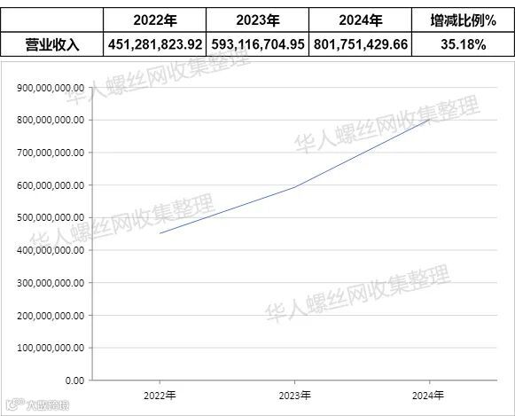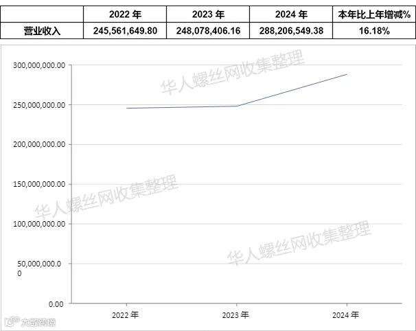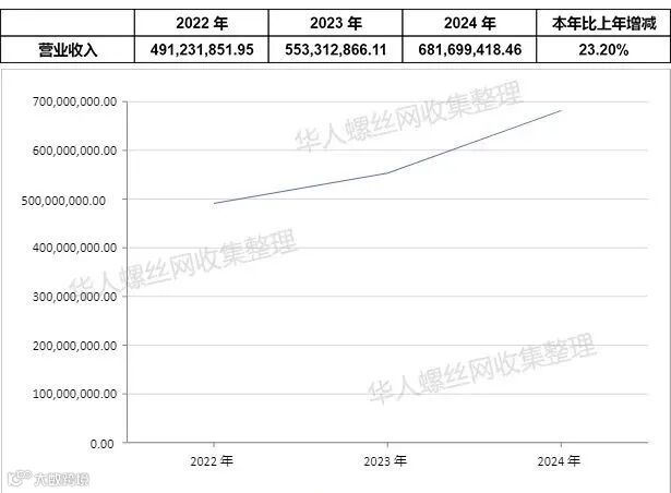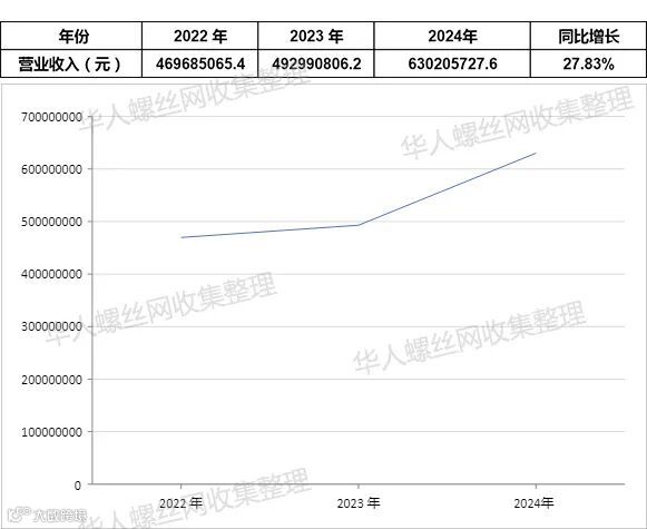 2024年,浙江华远实现营业总收入68,169.94万元,同比增长 23.20%;产品分类中,紧固件(异型紧固件、标准紧固件)合计营收为41,409.10万元,占比为60.74%;市场分布上,境内收入为64,033.32万元,占比93.93%,境外收入2,973.58万元,占比4.36%。