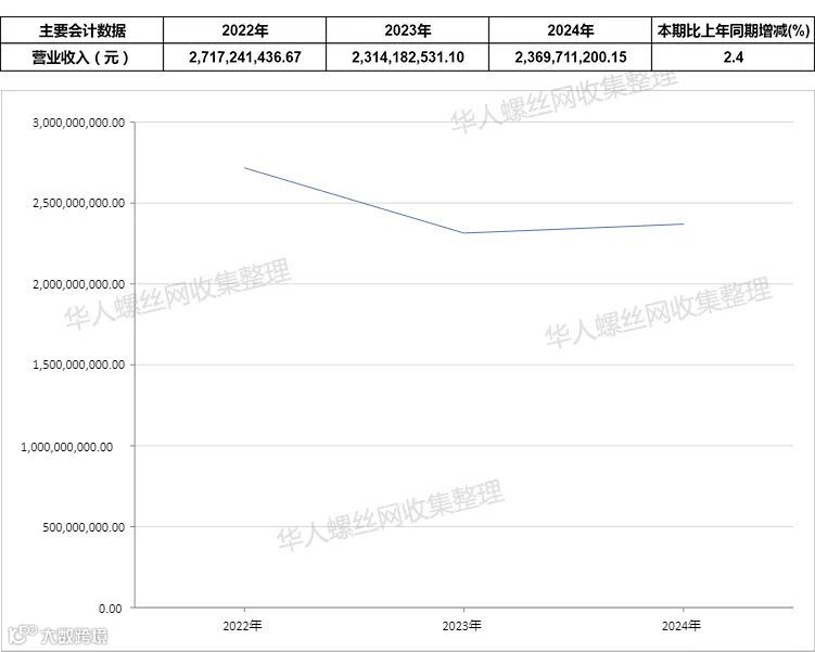 2024年,晋亿实业实现营业收入236,971.12万元,同比上升 2.40%;产品分类中,紧固件以196,158.22万元,居于首位,占比为82.78%;市场分布上,国内市场营业收入198,316.21万元,占比83.69%,境外地区营收26,959.47万元,占比11.38%。