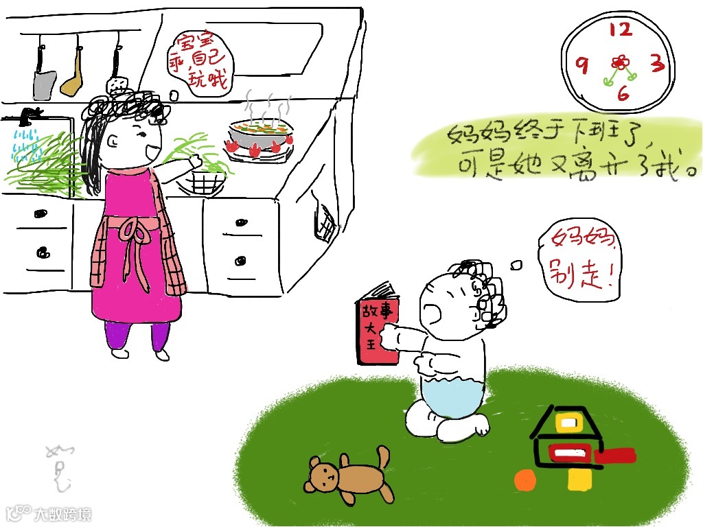 小编把这个故事画下来分享给你们,不是要你们重返家庭,全天24小时地陪伴宝宝(毕竟让宝宝独立面对生活也是他成长的一部分),而是希望你从此有一颗觉悟的心和眼睛,尽可能地在孩子的童年去陪伴他,因为现在的你就是孩子的全世界,你真的很重要!