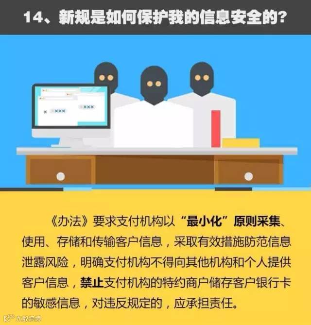 《办法》建立了支付机构网络支付业务分类监管机制,坚持支付账户实名制底线,建立健全客户身份识别机制,切实落实反洗钱、反恐怖融资要求,防范和遏制违法犯罪活动。