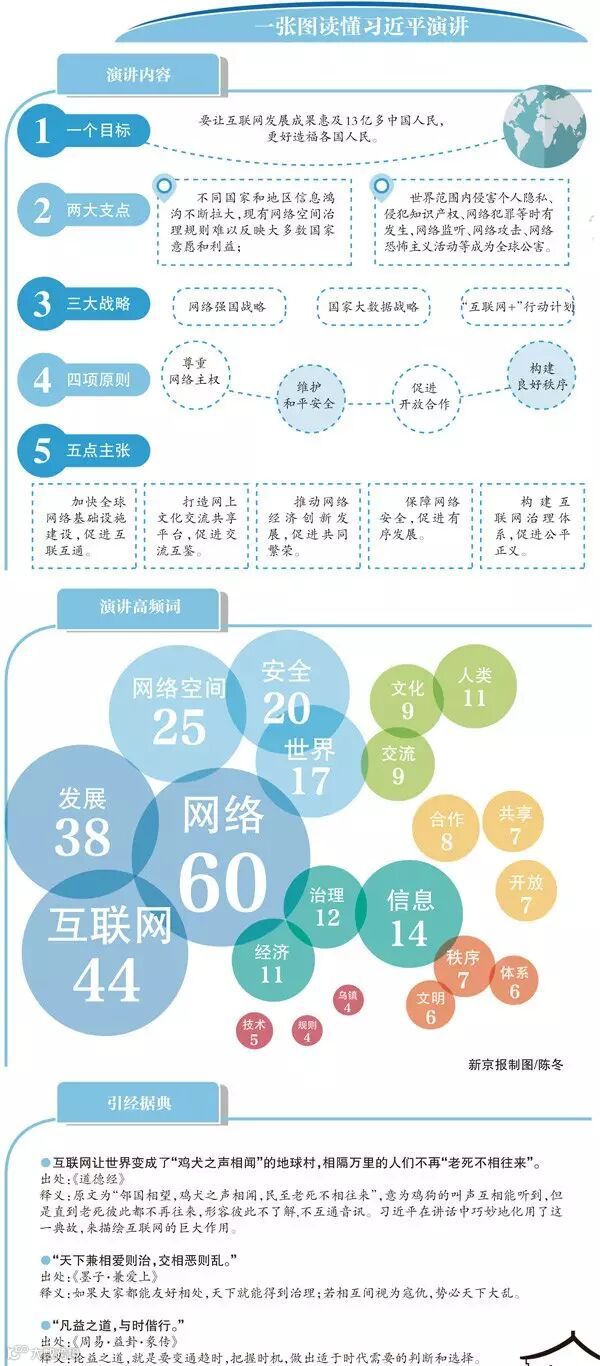 “习近平此次演讲将中国历来对于互联网治理、网络安全等问题进行系统性阐述,勾勒了一个网络强国的蓝图,他提出的四项原则是和平共处五项原则在网络领域的投射与发展,意义非常重大。”复旦大学国际政治系副教授沈逸对新京报记者说。