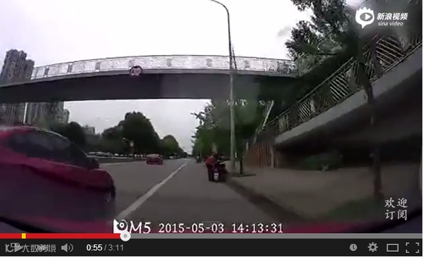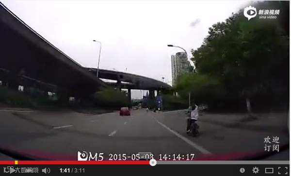 可真是无独有偶了,女司机又是看准了骑车的行人才冲上来的。你不是开得不好脑子反应慢么?现在怎么那么快准狠了呢?
