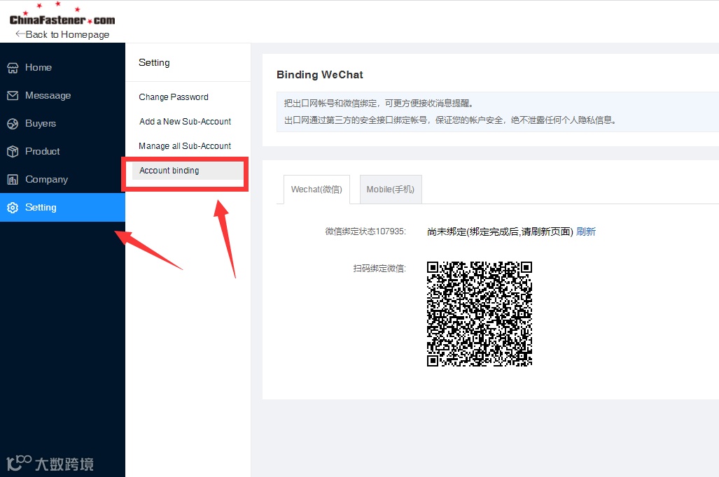2)首次扫码登录需要绑定微信二维码;可通过会员中心, 设置,帐号绑定,微信扫一扫,即可绑定成功。