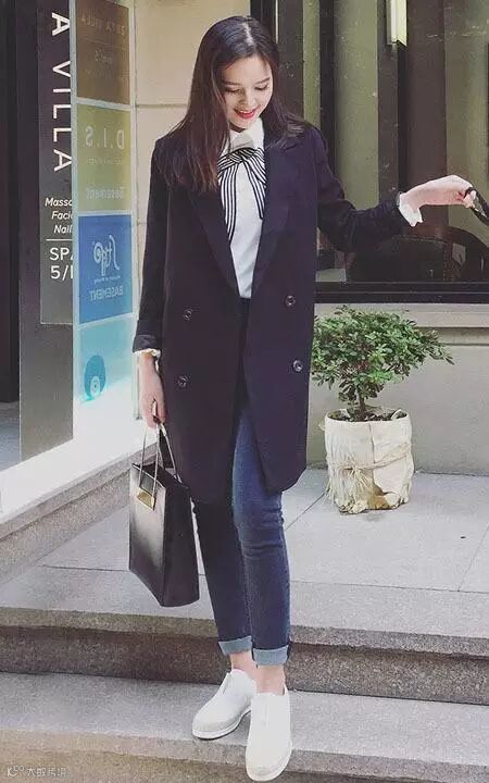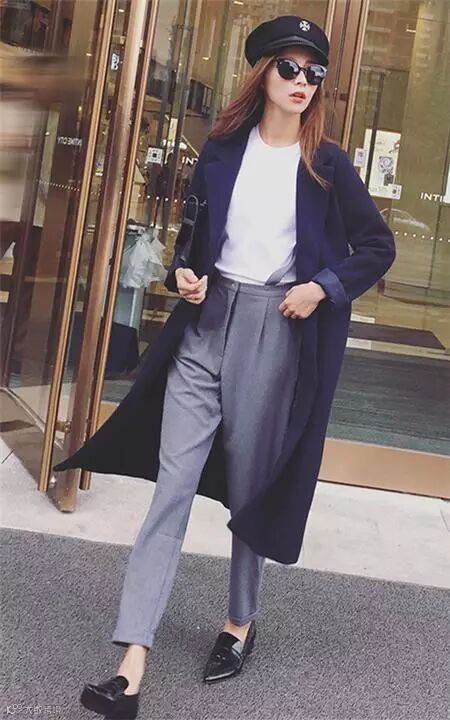 大冬天裹上人气单品chic简约长款西装外套大衣,搭配衬衫和背带连衣裙。会很有范儿,而且显瘦!!