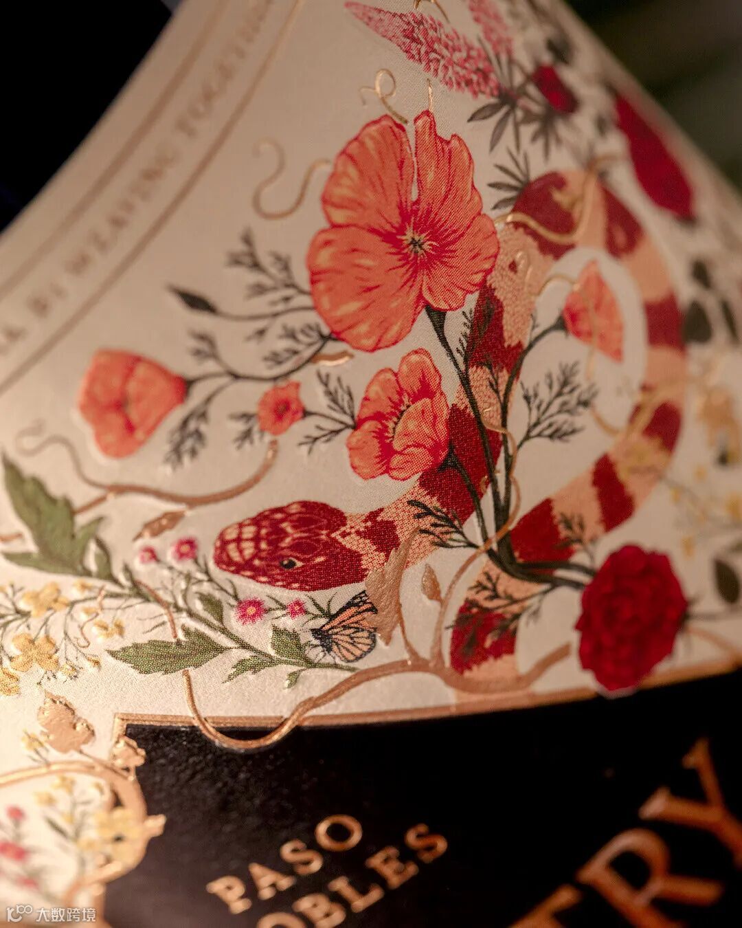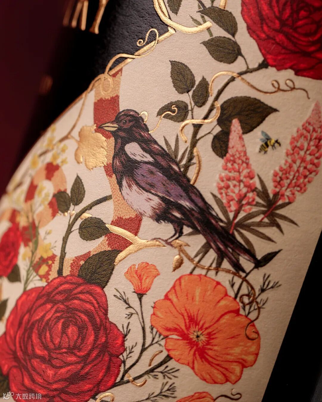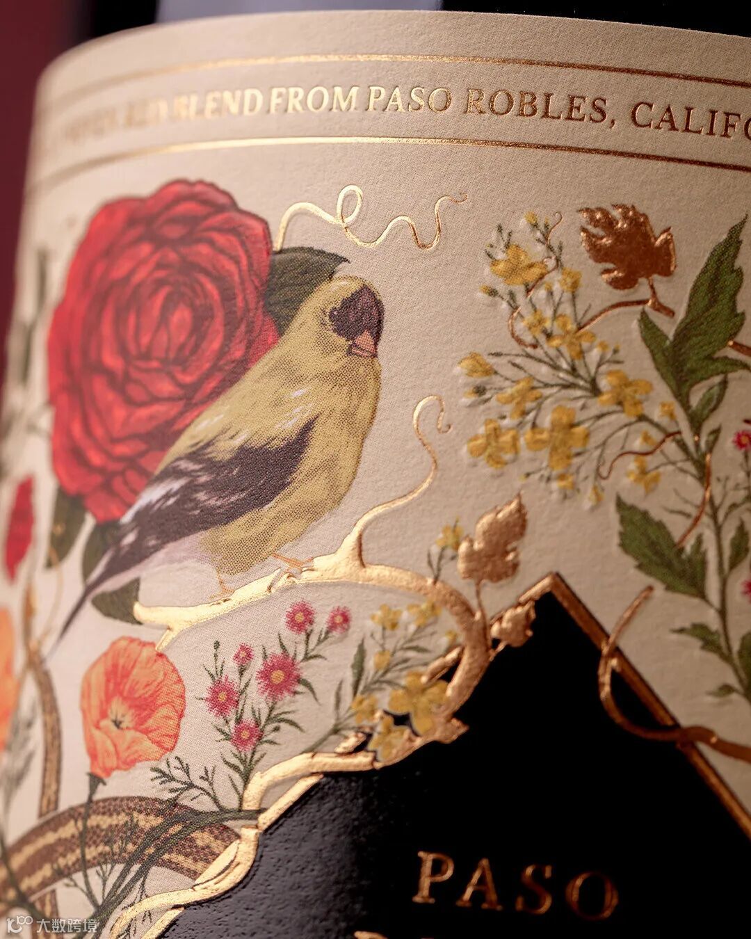帕索罗布斯葡萄园的花草鸟兽被艺术性地交织于一体,形成一幅既丰富又出人意料的图案。