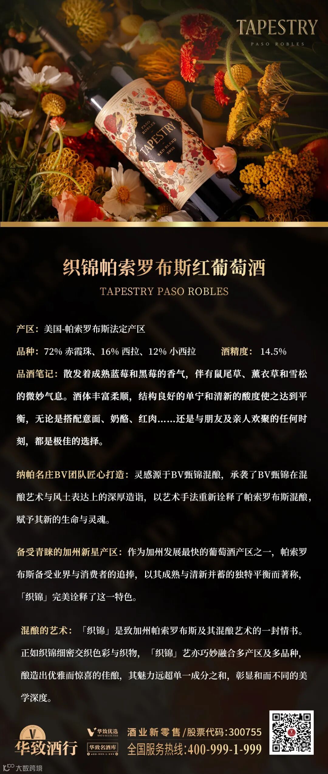 正如织锦细密交织色彩与织物,织锦帕索罗布斯亦巧妙融合了帕索罗布斯多个地域的多样葡萄品种,酿造出优雅而惊喜的佳酿,其魅力远超单一成分之和,彰显和而不同的美学深度。