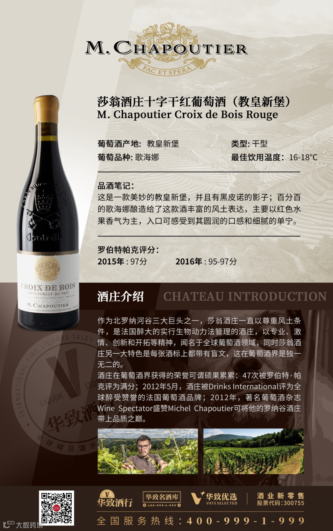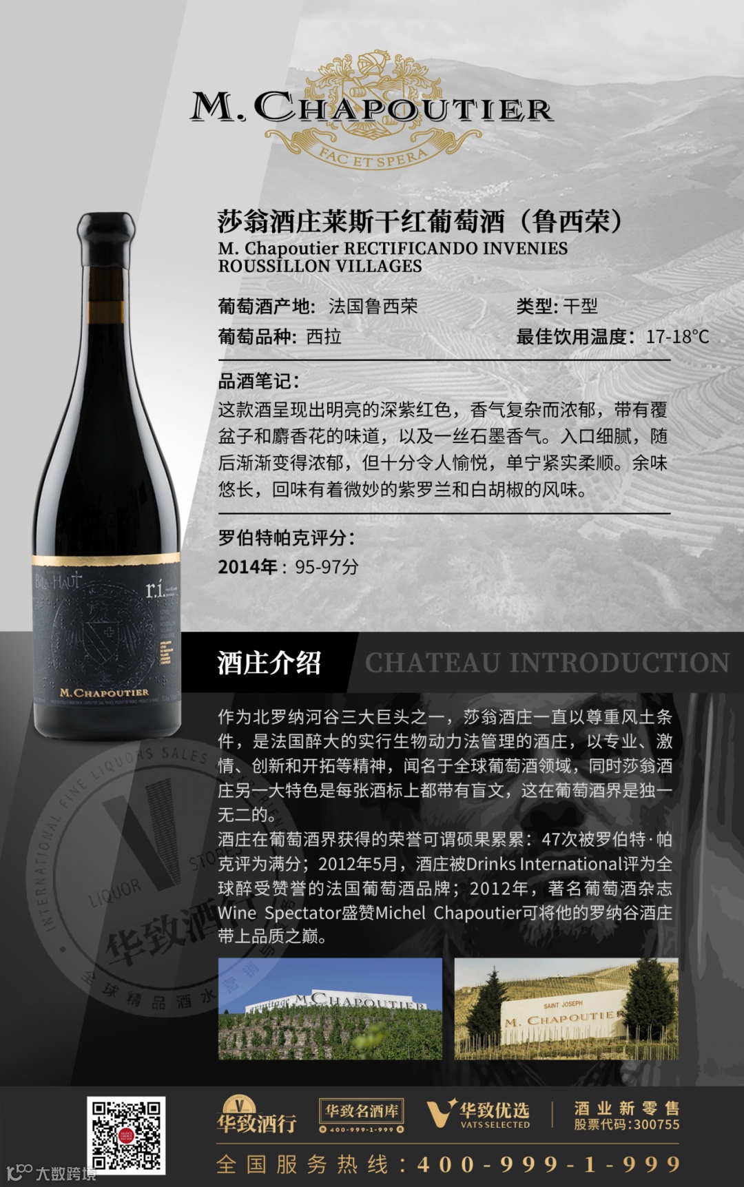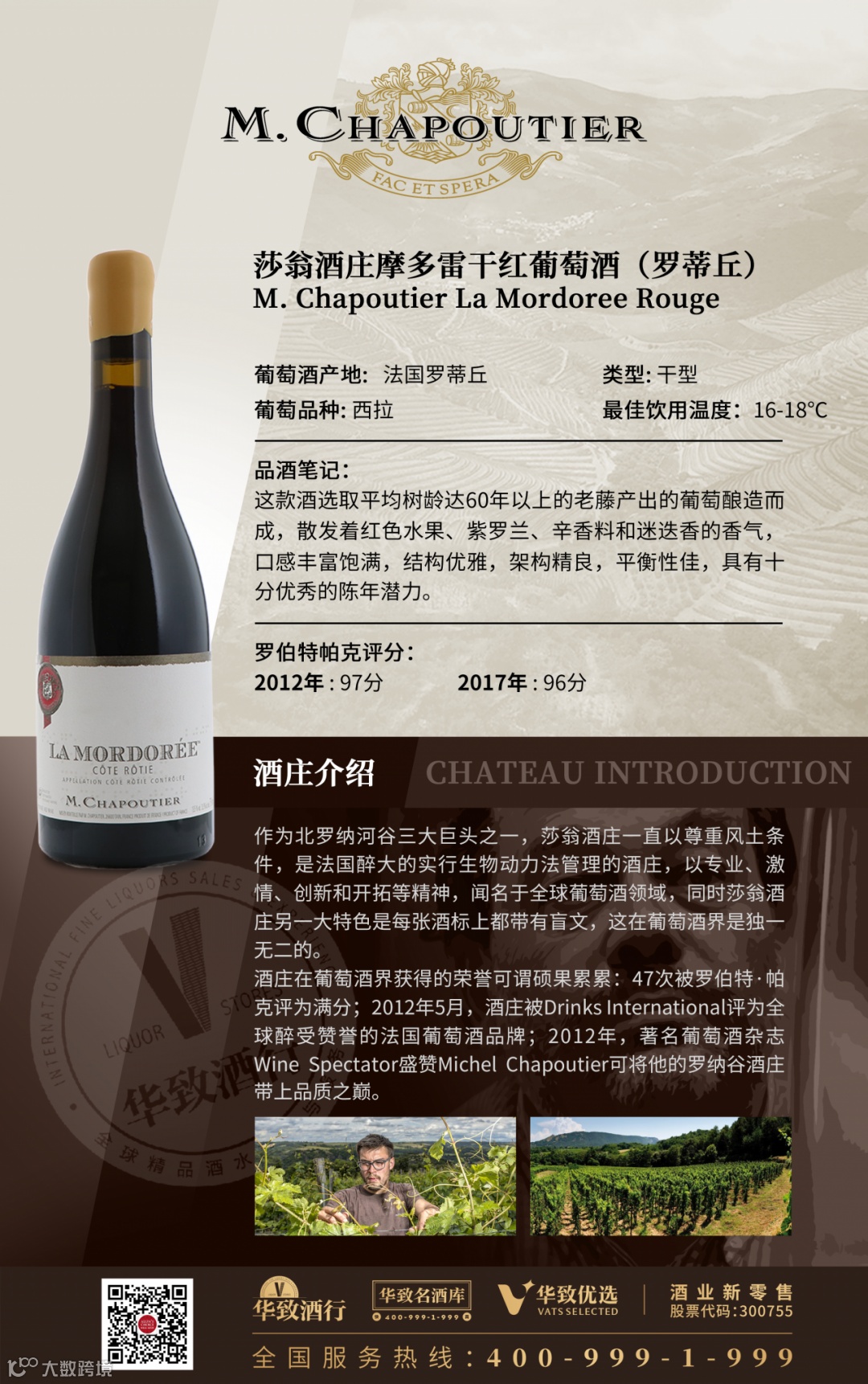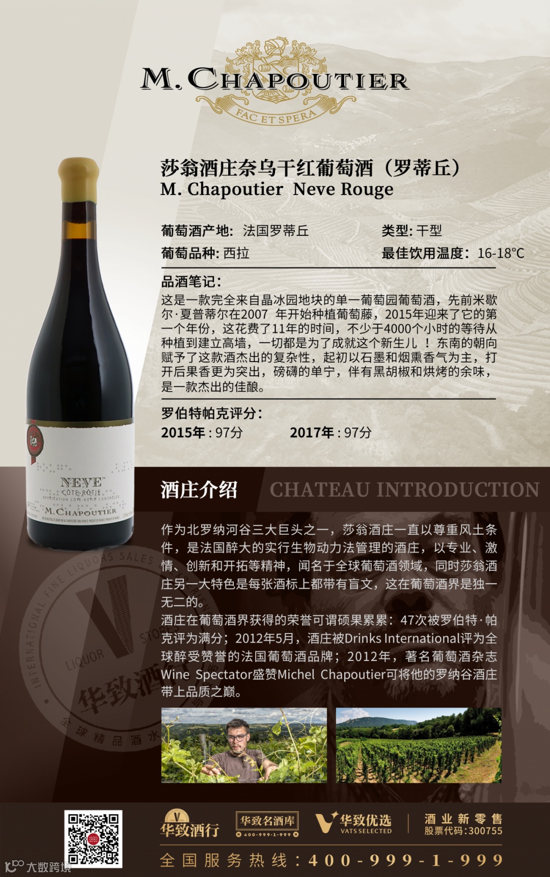 作为北罗纳河谷三大巨头之一,莎翁酒庄Chapoutier一直以尊重风土条件,以及专业、激情、创新和开拓等精神,闻名于全球葡萄酒领域。