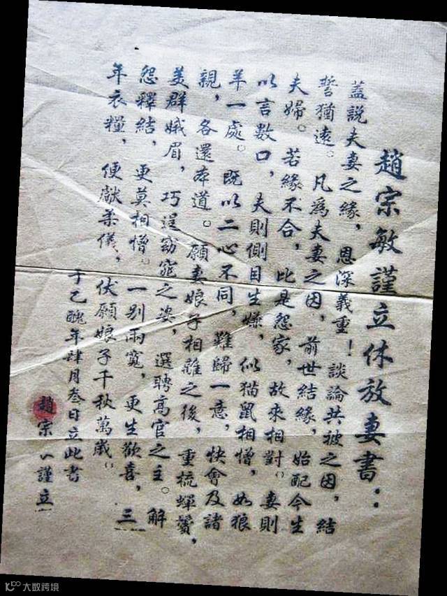 1900年,敦煌莫高窟出土一批唐代文献,里边保存着不少唐人的"放妻书"(离婚证书),基本内容如下: