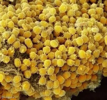 这看起来很想海底的某种生物是吗?但其实是点状细菌聚集在牙齿上的放大图