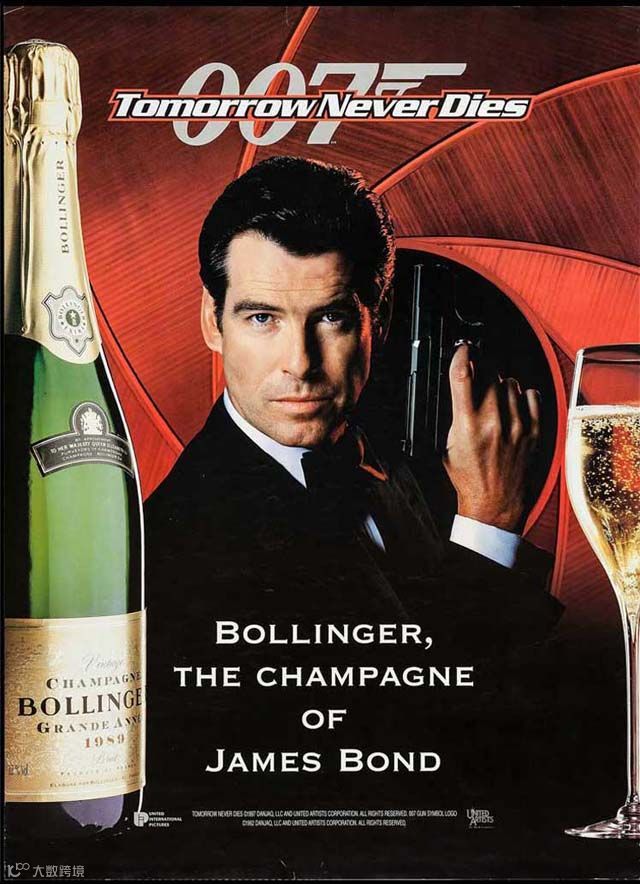 在007系列电影中,詹姆士·邦德是最为男人艳羡和女人迷恋的角色了。枪是他的工作,而酒就是他的生活。在每一次邦德式的调情和庆祝中,香槟永远都是他必不可少的配角,优雅与强劲完美融合的香槟才能诠释邦德个性的果敢机智和优雅奢华。