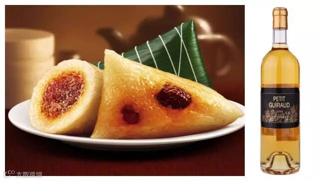 实战感受:粽子中少量的甜枣味与此款甜白葡萄酒中的甜蜜口感相得益彰;糯米粽的甜滑与贵腐葡萄酒浓郁的花香(玫瑰、槐花)和优雅的蜂蜜协调一致,精致平衡,是真正的甜而不腻。此种搭配算得上美味。