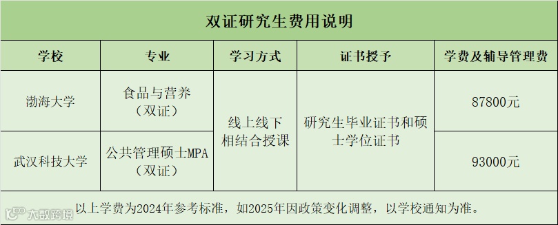 (1)双证:渤海大学、武汉科技大学,需参加2025年12月全国联考,考上后平时学习以线下面授课为主。