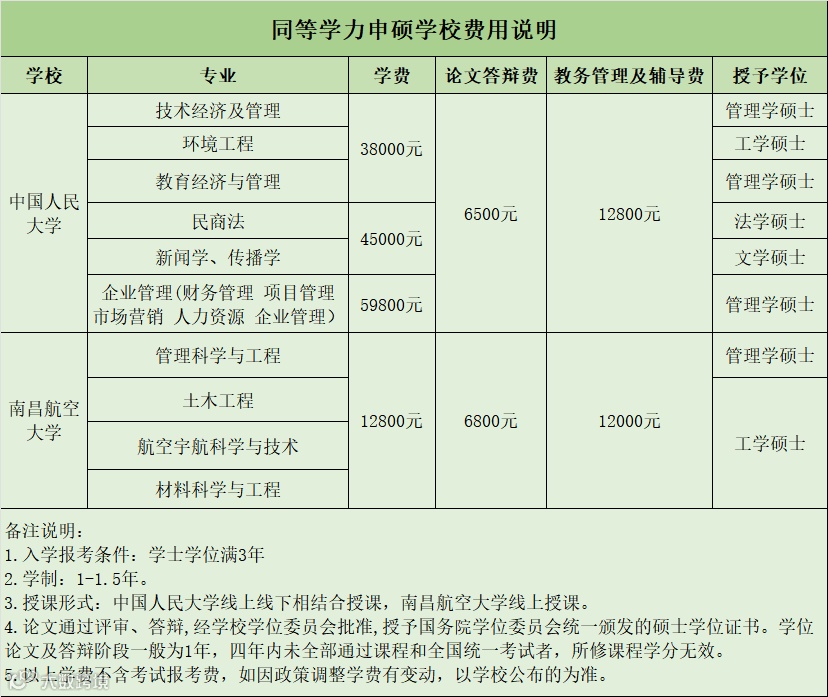 (2)单证:中国人民大学、南昌航空大学,完成所有课程学习后,满足同等学力申请硕士学位条件学员,可参加全国统一考试,成绩合格达标者,再完成学位论文的撰写及答辩。