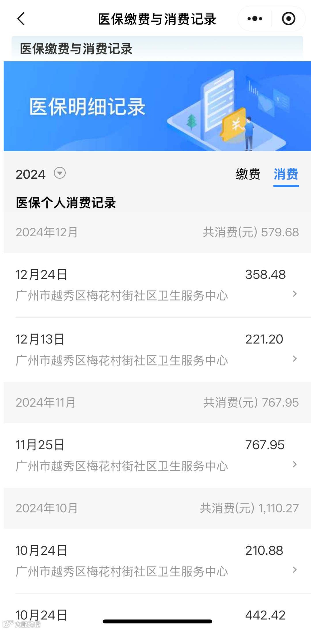 通过粤医保首页的“我的权益—消费信息—消费”,选择对应的年份即可查询。