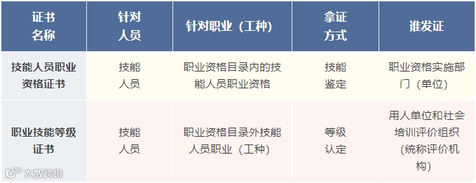 职业资格证书和职业技能等级证书