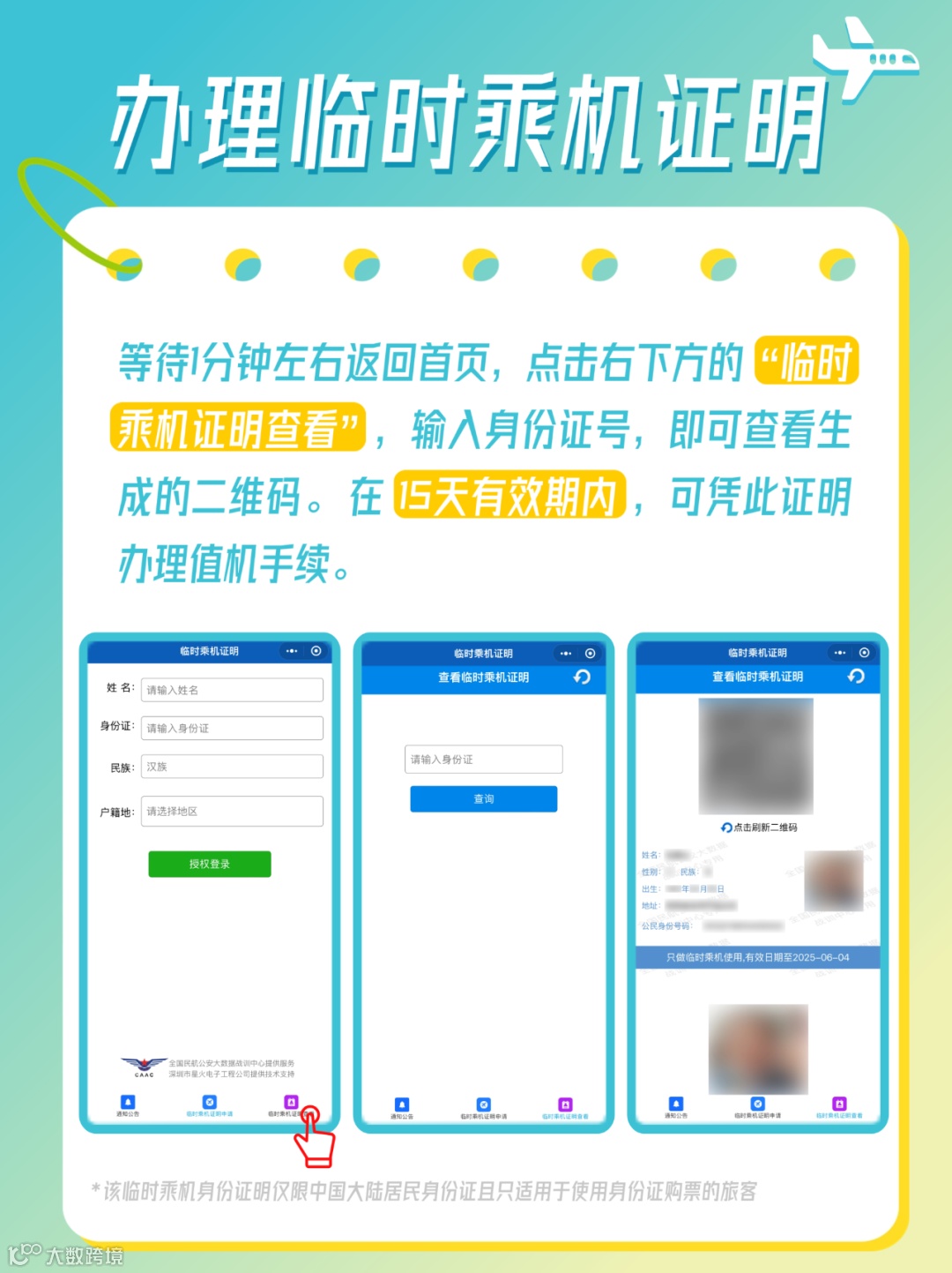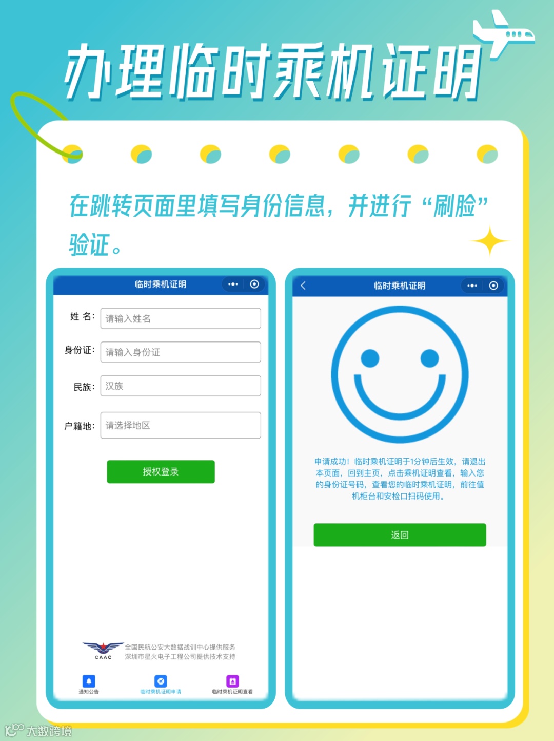 假期出行忘带身份证?1分钟领取你的临时乘机证明→