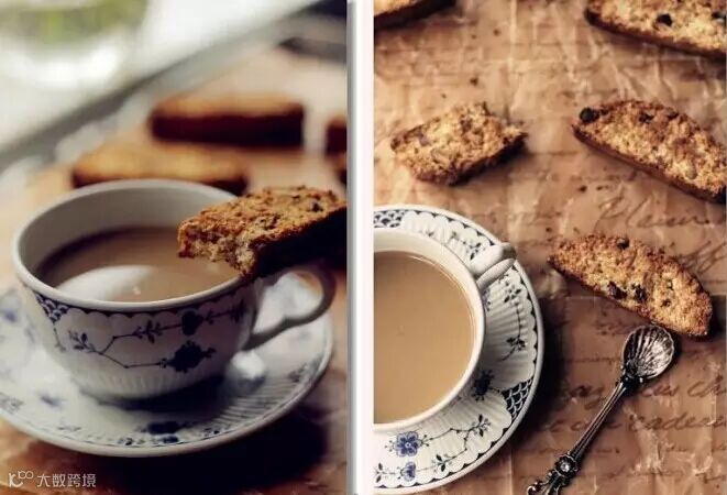 除了Vin Santo,脆饼最常见的搭配还有咖啡,所以你也可以常在咖啡厅里见到它们相携登场的身影。同样需要将脆饼蘸在咖啡里食用。不过无论是cappuccino还是Vin Santo,biscotti都能做到游刃有余。