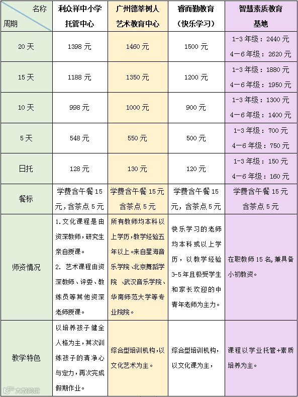 经前期调研,在白云区、花都区、东华村范围内选出有招生资质的托管机构,经商谈,有意向合作的培训机构有: