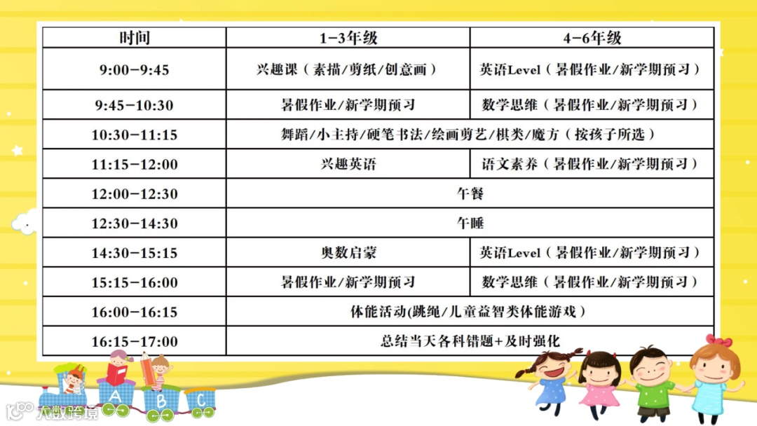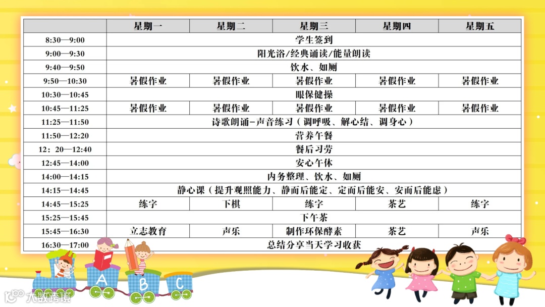 以培养孩子健全人格为主,其次训练孩子的清净心与定力,再次完成假期作业。