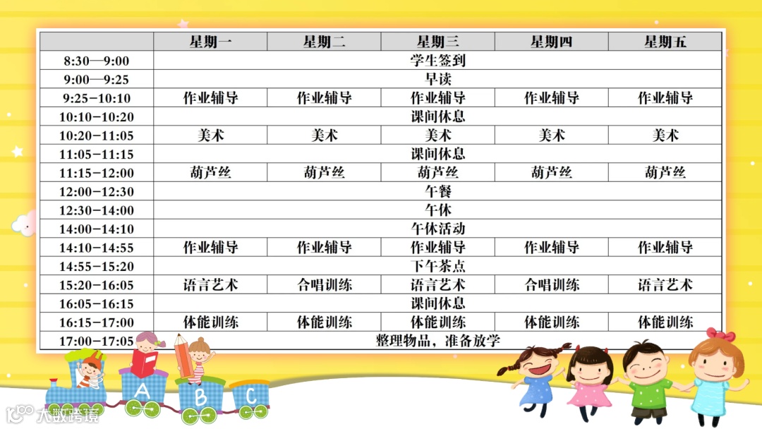 3.每班至少配有一名5年以上课程教学经验的班主任和一名副班主任,学生超过20人另配一位一年以上教学经验的助教老师。
