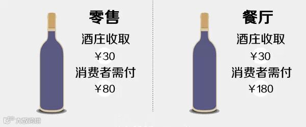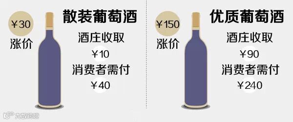 除了葡萄酒涨价以外,不同类型的销售点会对每瓶葡萄酒收取不同比率的价钱。