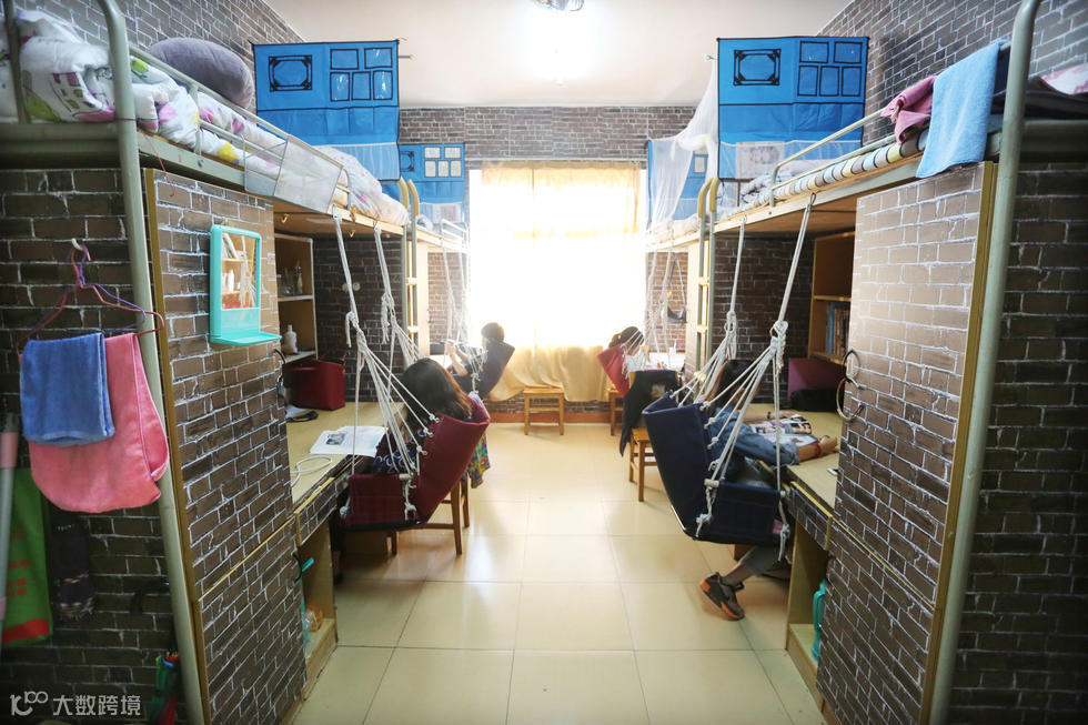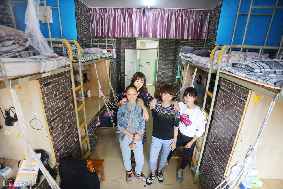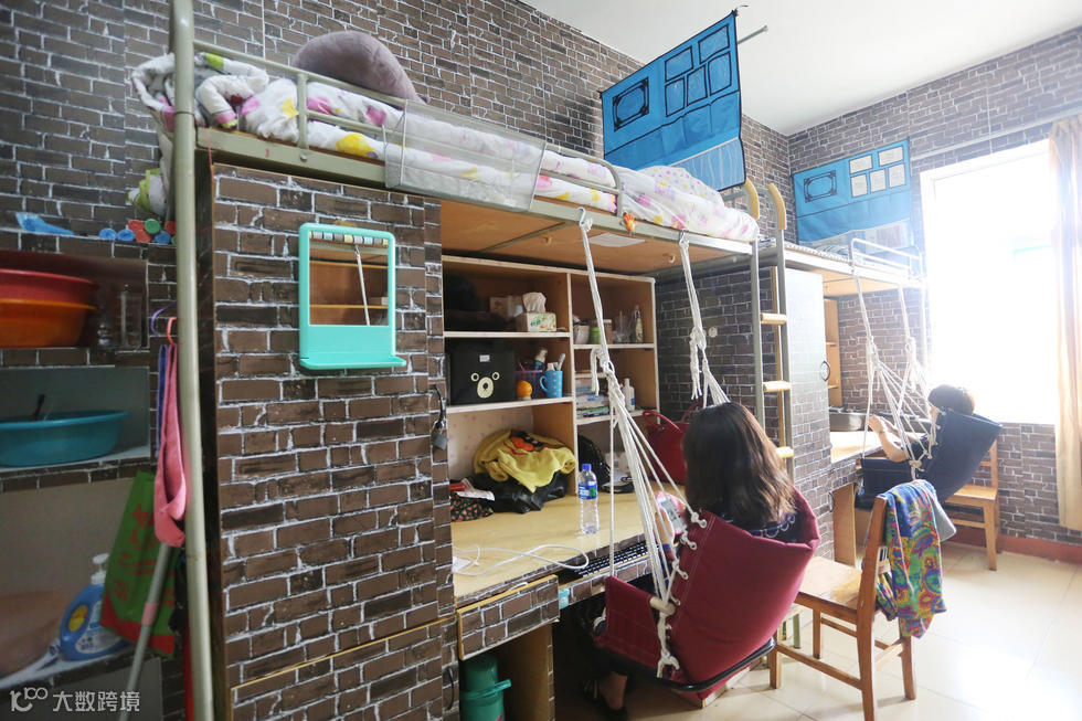 九江学院艺术学院四位女生,花费了大约1300元,将单调划一宿舍,精心布置成复古砖砌风格系小公寓。墙壁上用的是复古砖砌风格的壁纸,坐椅换成了吊床,窗前挂的是伸收纳的窗帘,就连宿舍门上,都手绘了一幅咖啡图,大气与小清新并存、整体又不显凌乱,给人耳目一新的感觉。