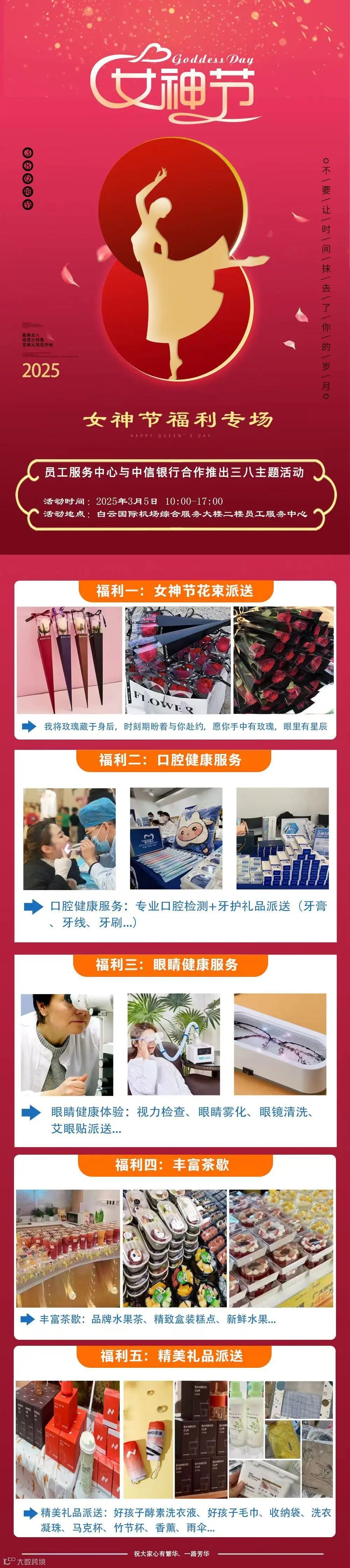 为了感谢大家的付出,员工服务中心与中信银行合作,特在女神节来临之际,给大家安排了丰富的福利: