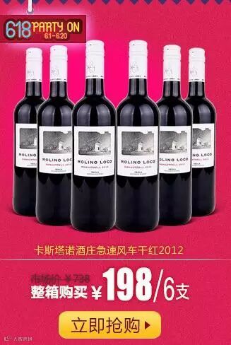 强烈推荐3:卡斯塔诺酒庄急速风车干红葡萄酒 6支装