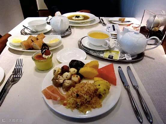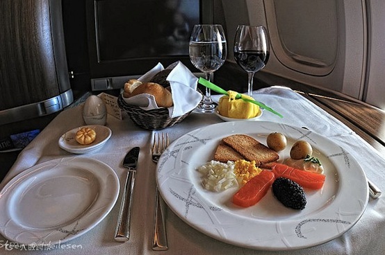 英国航空的头等舱采用米其林星级名厨定制正宗英伦餐。关于米其林星级厨师我想说:『一级棒!』。但对于正宗英伦菜我想说:『唔~~唔~~唔~~唔~~唔~~唔~~↖↗↘↙ ↘↗↘↙ ↘』好了我说完了。(快够,至少是块肉!)