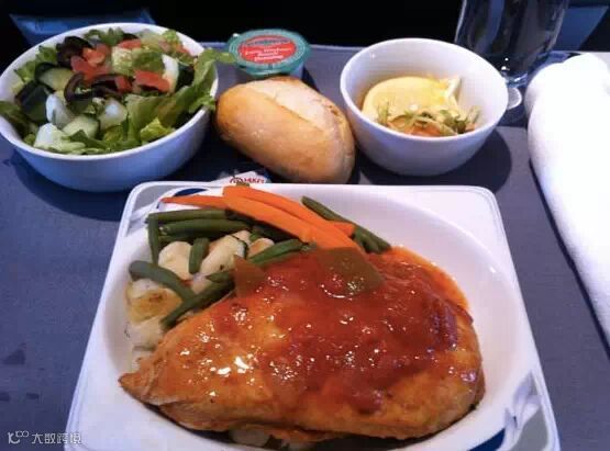 这些是经济舱的美食,值得一提的是除了香槟是收费的。其他多款饮料,包括开胃酒,烈酒,啤酒以及红酒和白葡萄酒都是免费的。(土豪国,膜拜!)