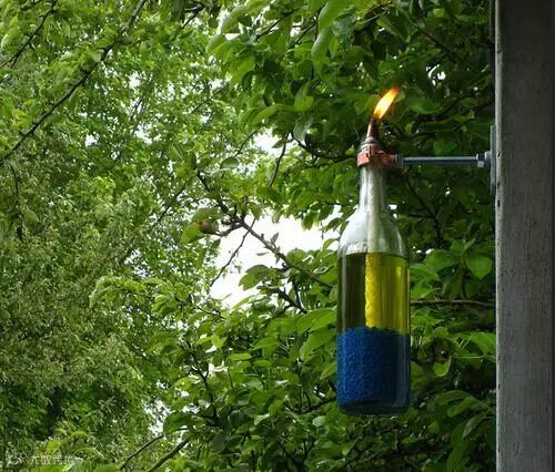 只需要从五金店里买一些配件,搜集一些漂亮的小碎石,你就可以DIY出一个复古酒瓶小油灯。夜晚十分,庭院中那些跳动的火光远比电灯更能带给心灵温暖和慰藉。不过,因为涉及到柴油等易燃品和考虑到预实验的危险性,不建议妹纸亲力亲为。