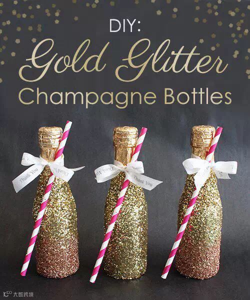这绝对是一个很stweet的玩物!女孩子们看到它,肯定爱不释手。一定要用最小的187ml装香槟瓶,大的显得很笨很愚蠢。金金粉可以选择颗粒大一点的,太细的会掉粉末拿起来会粘得满手都是。对了,这不是废物利用哟,你需要准备的是没开过的小香槟。把它们放到礼盒里,可以堪称史上最有爱礼物了!