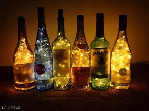 一排酒瓶灯,可以点亮夜生活。制作方法可以简单到爆表,极其适合懒人:拿几个漂亮的空酒瓶让汽修店的师傅帮忙在瓶底钻一个小洞,淘宝上买一些LED灯带,把它从小洞塞进去,插上电源就OK了!轻轻松松就做成一个轰趴利器,满满的朋友赞美,惬意地自我陶醉~~