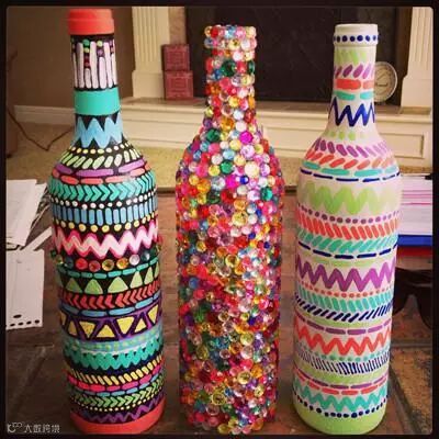 即使从小学之后再也没拿过画笔,你也可以制作一个闪瞎眼的bling bling酒瓶。可以全身镶钻,也可以用简单的线条彩绘。两种制作方法都很简单,不过还是需要一些耐心才能做美。全瓶先涂一个基色,然后一层×一层……再一层%&¥@地随性发挥,胡乱弄出来的随意效果可能超乎想象哦。