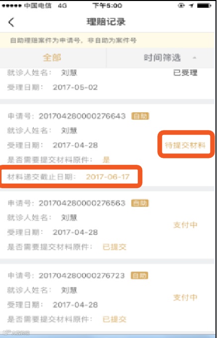 5、上次案件未赔付完成还在审核阶段的情况下,再次提交理赔,会导致案件合并。