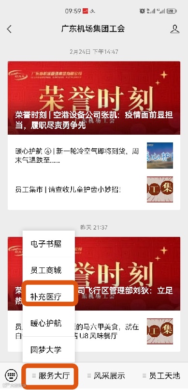 广东机场集团工会公众号——服务大厅——补充医疗