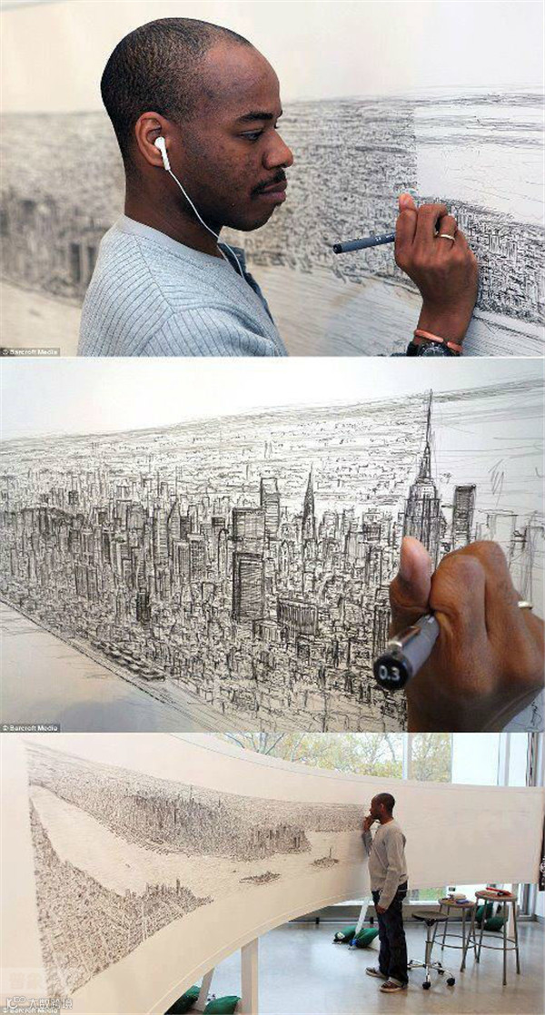2009年,他只用一周左右的时间就完成了一幅长约5.5米的“纽约轮廓”。目前,他已经分别为罗马、法兰克福、耶路撒冷、东京、香港、马德里和纽约等城市绘制了全景图,而每次绘画之前他仅仅需要20分钟时间乘坐直升机飞行于这些城市上空。