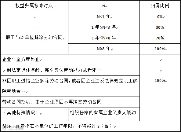 2.职工企业年金个人账户中单位缴费及其投资收益,按以下归属于职工个人。未归属于职工个人部分,记入企业账户。