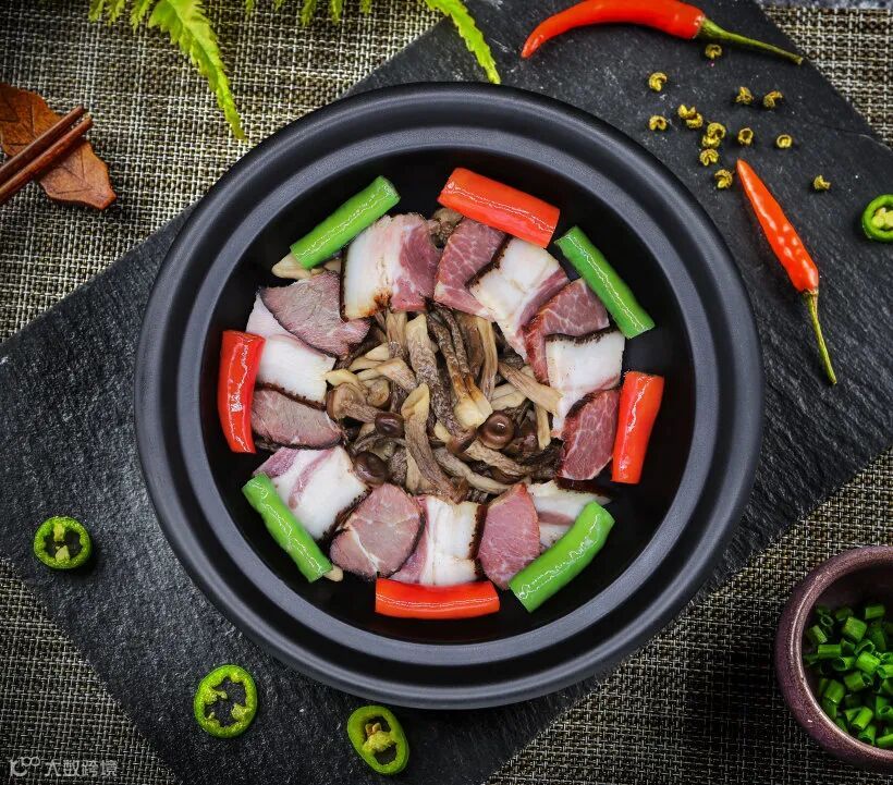 Stir-fried Mushroom with Preserved Pork in Clay Pot