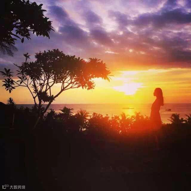 出去玩最爱看日出日落,于是盘腿坐下来抬头看日落,摄影师一定要将阳光和人在风起的时候按快门。