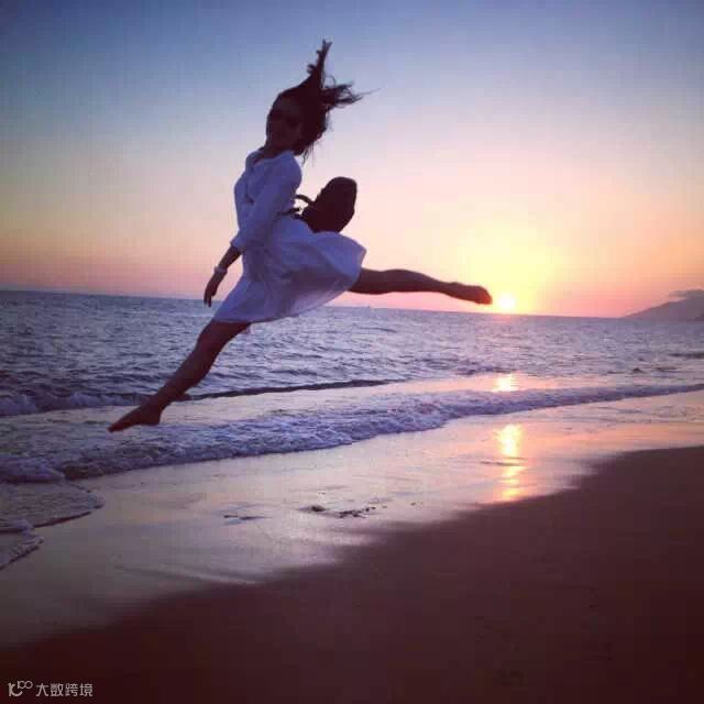旅行的时候蹦蹦跳跳然后按快门其实蛮出彩的,但是怎么跳好看呢?还是背影,跳起来,一只脚弯着。